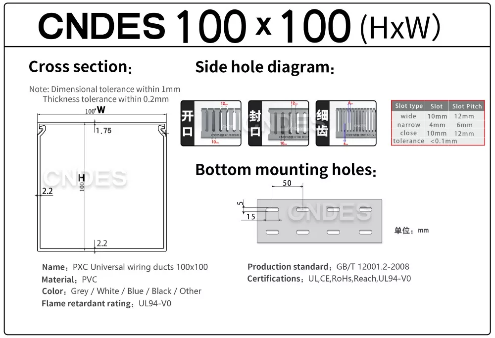 CNDES - 24 жылдық тәжірибесі бар кәсіби кабельдік науа өндірушісі, 100 мм биіктіктегі ашық ұяшықты ПВХ қоршауының сым арналарын өндіруге маманданған. Мұнда біз 100 мм биіктіктегі кабельдік науалар сериясын таныстырамыз.