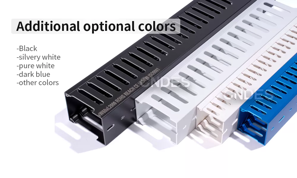 Ультра ықшамнан (20×15мм) бастап үлкенге (100×120мм) дейінгі өлшемдердің толық ауқымын ұсынады, әртүрлі кабельдік мөлшерлер мен диаметрлерді (мысалы, сервер шкафының кабельдері үшін өте қолайлы 40×60 мм өлшемі) қабылдайды. Ақ, сұр және қара сияқты стандартты түстерде қол жетімді немесе оңай санаттау және жақсартылған кабельді басқару үшін корпоративтік логотиптермен және жол нөмірлерімен теңшелген. Саңылаулы ПВХ корпусының сым арнасы сәйкес қосқыштарды (U-тәрізді қыстырғыштар сияқты), қақпақ тақтайшаларын және кронштейндерді қоса алғанда, керек-жарақтардың кең ауқымын қамтиды. Құрылыс процестерін жеңілдету үшін бірнеше орнату әдістерімен үйлесімді бұрандамен бекітуді де, қысқышты орнатуды да қолдайды.