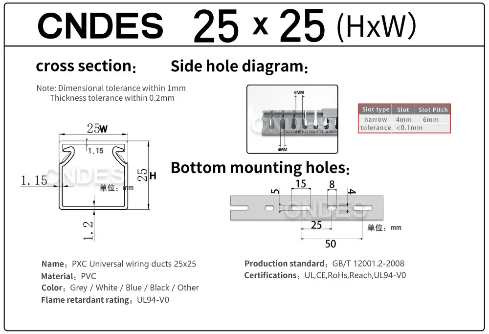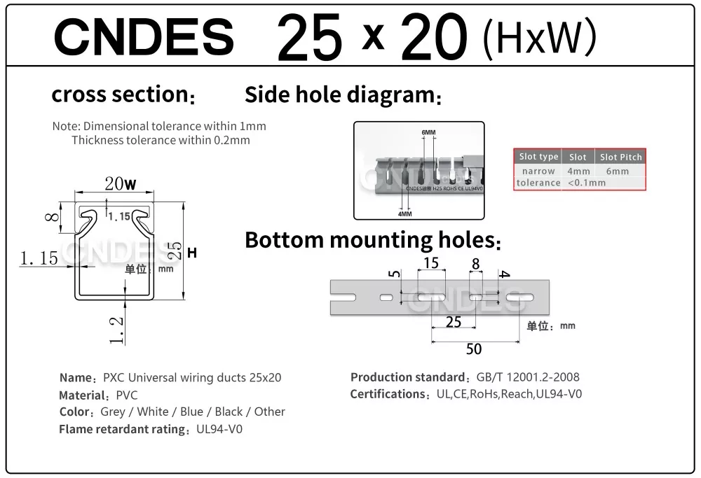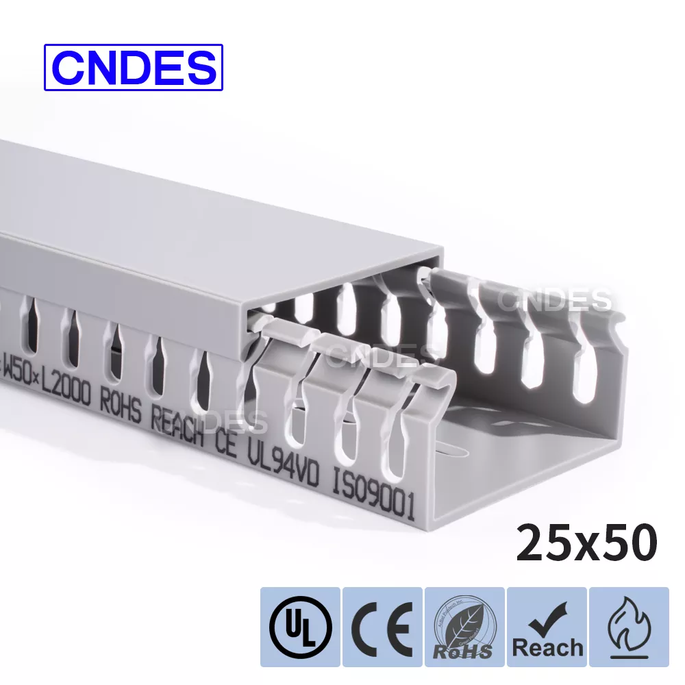 Бірегей сегменттелген автоматты кесу процесімен біріктірілген тәуелсіз әзірленген жоғары дәлдіктегі штамптау жабдығы арқылы CNDES өнімділігі жоғары 25 мм биіктіктегі ПВХ саңылаулары бар басқару панелінің арналарын қоса алғанда, көптеген спецификациядағы өнімдерді икемді түрде шығара алады, бұл тұтынушылардың басқару шкафтары мен электр жүйелеріндегі әртүрлі қажеттіліктерін қанағаттандырады.