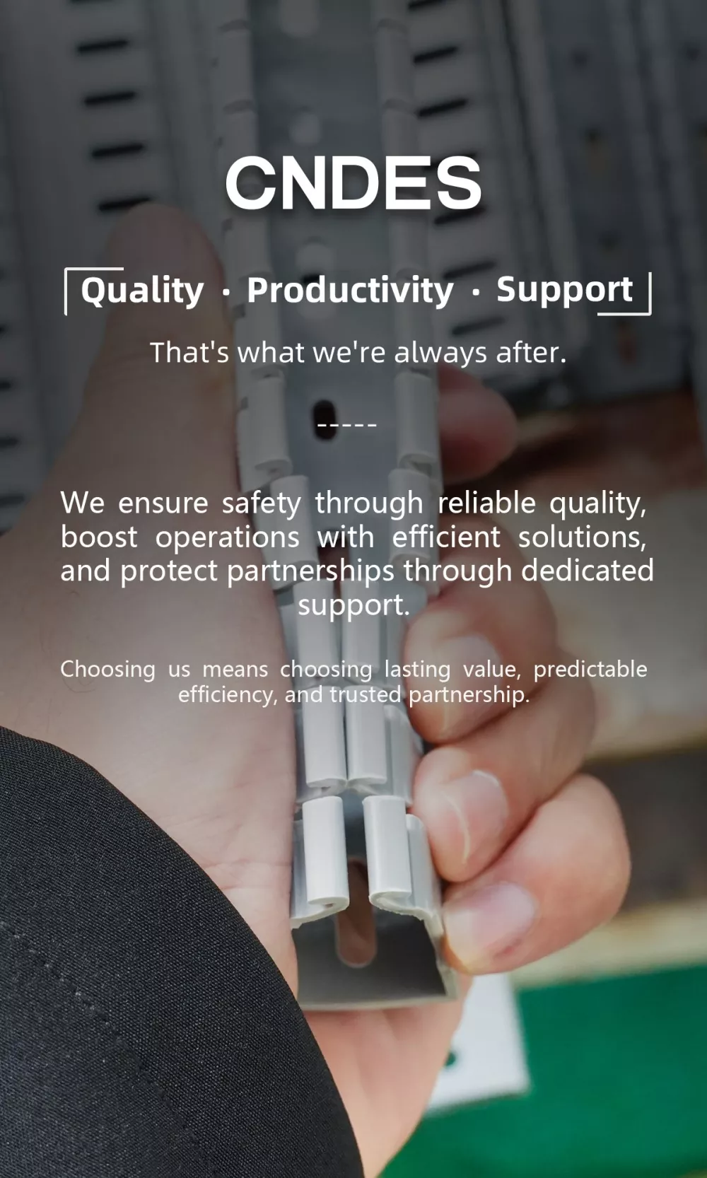 Егер сіз тұрақты жеткізуді, сенімді сапа мен жетілген технологияны ұсынатын ұзақ мерзімді серіктестіктер үшін сенімді ПВХ кабельдік науа өндірушісін іздесеңіз, онда CNDES - сіздің тамаша таңдауыңыз.