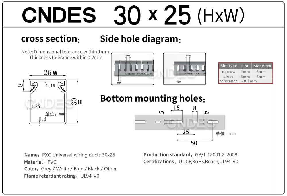 Егер сіз Қытайда сенімді теңшелген 30 × 25 саңылаулы ПВХ сымын қорғау арнасының өндірушісін немесе жеткізушісін іздесеңіз, CNDES сіздің жобаңызды зауыттық бағамен және кәсіби қызметпен қолдауға дайын.
