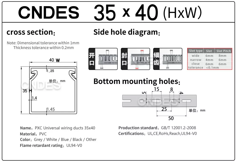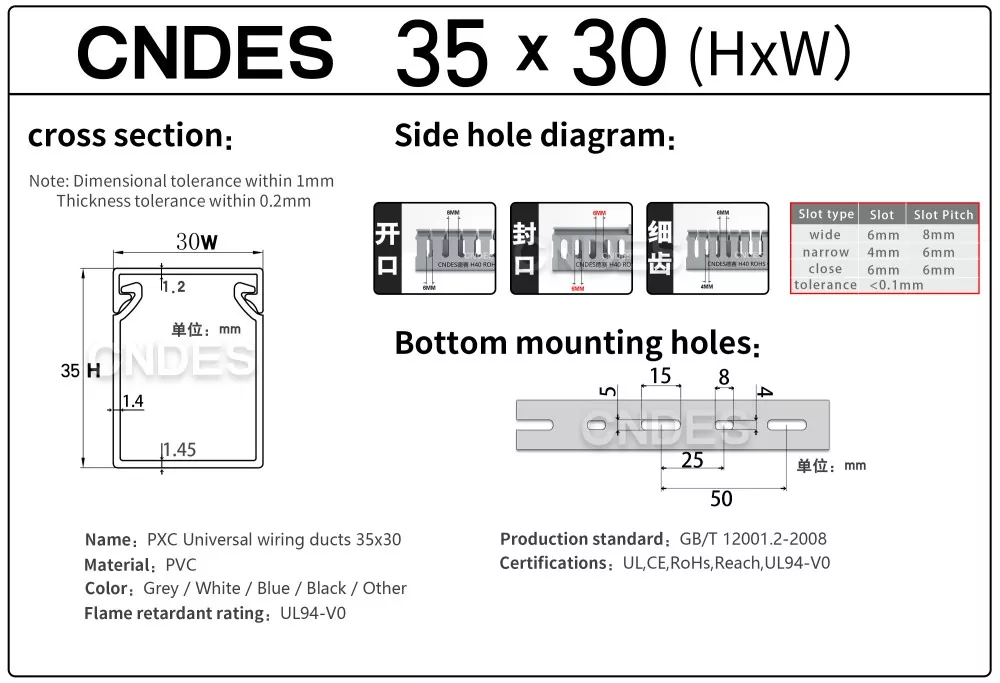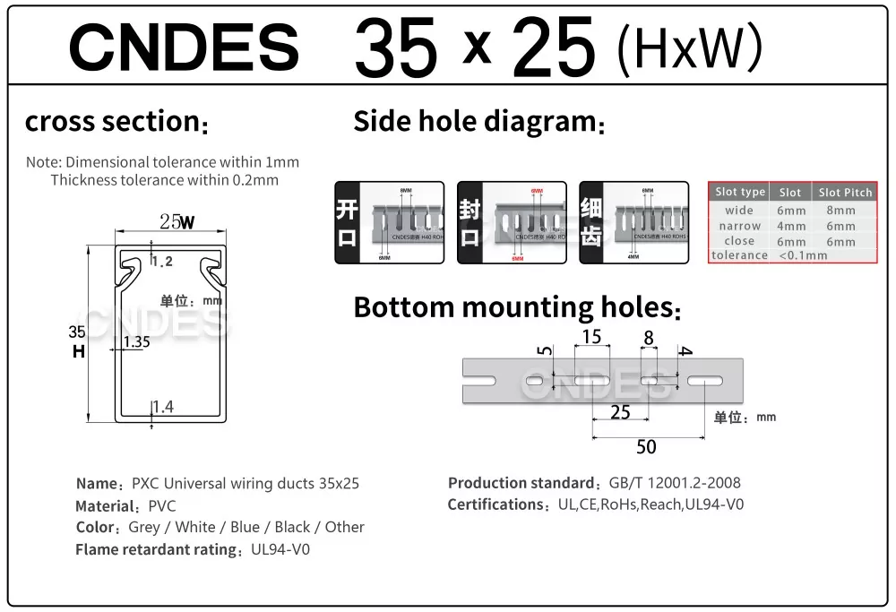 Халықаралық сертификаттар: Біздің теңшелген биіктігі 35 мм саңылаулы ПВХ сымды бағыттау арнамыз UL, CE, RoHS және REACH сияқты ең жоғары қауіпсіздік стандарттарына сәйкес келетіні үшін сертификатталған.