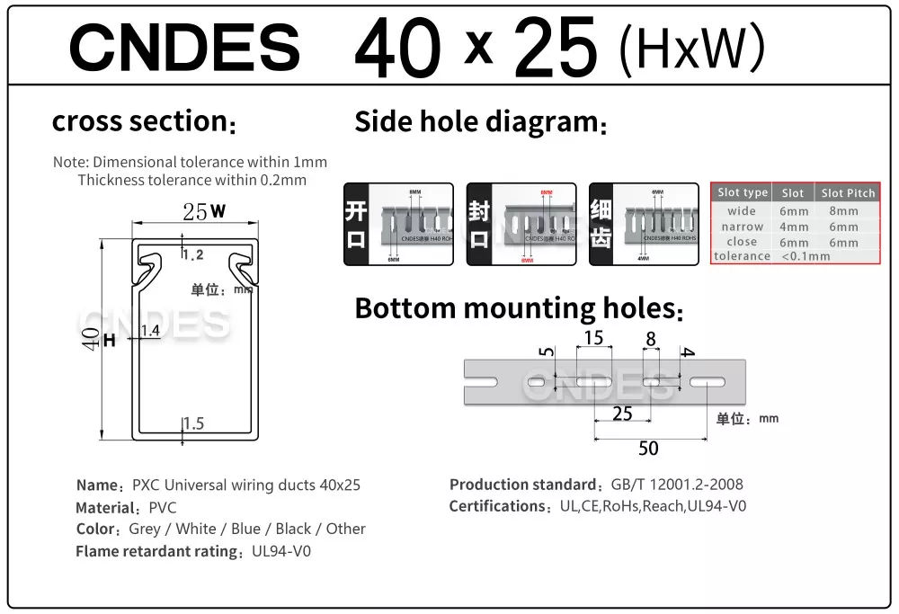 CNDES жетекші саңылаулары бар ПВХ сымының арқанды канал өндірушілері мен жеткізушілері болып табылады. Мұнда біз биіктігі 40 мм кабельдік науаларымызды, соның ішінде 40 * 25, 40 * 30, 40 * 35, 40 * 40 және 40 * 60 түрлерін таныстырамыз.