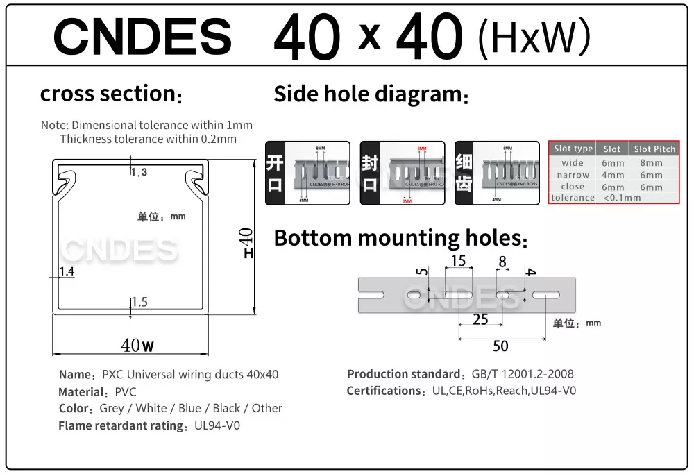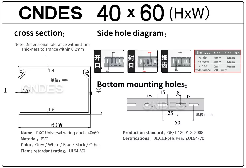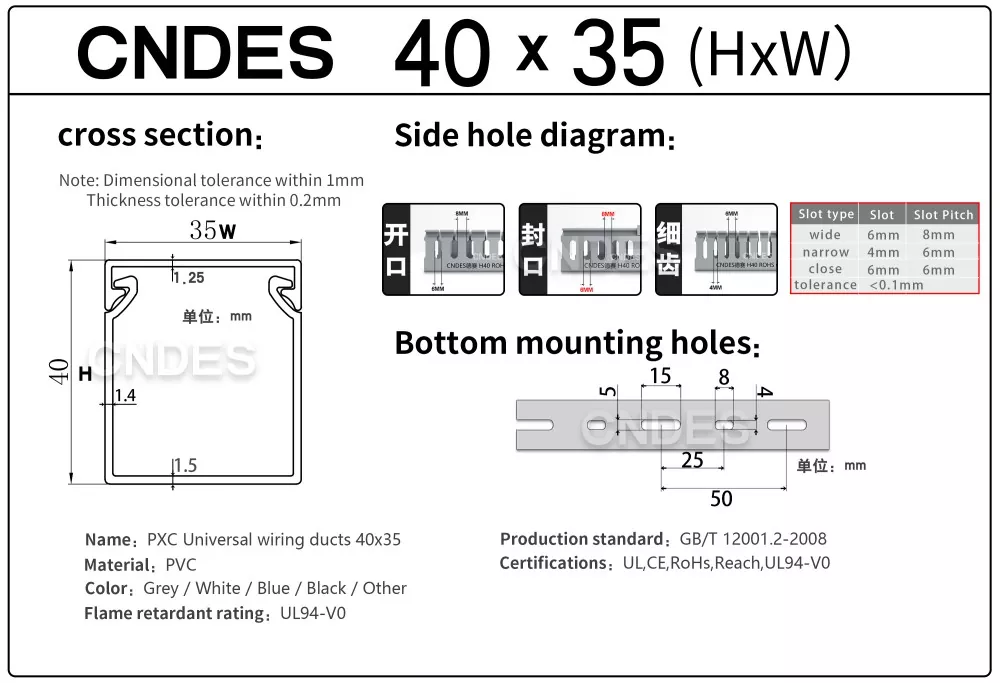 Егер сіз келесі жобаңыз үшін сенімді жоғары өнімділігі 40 мм биіктіктегі саңылаулары бар ПВХ сымдық трассаны іздеп жүрсеңіз, CNDES көмектесу үшін осында. Біз теңшеуді, жылдам жеткізуді және тікелей зауыттық бағаны ұсынамыз, бұл сізге қажет өнімді алуды жеңілдетеді.
