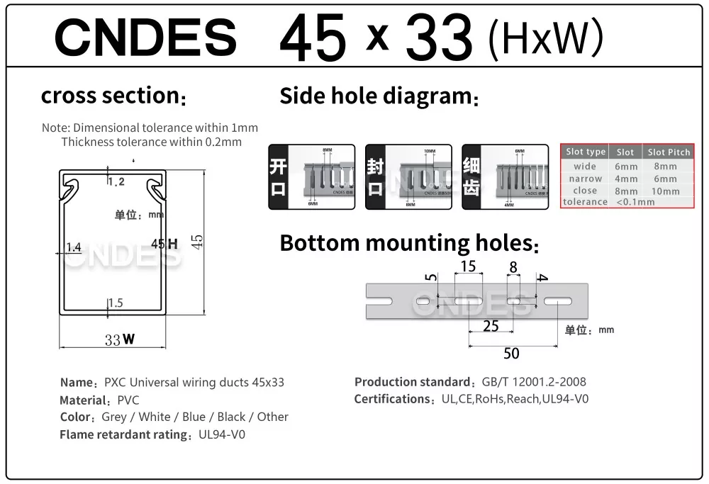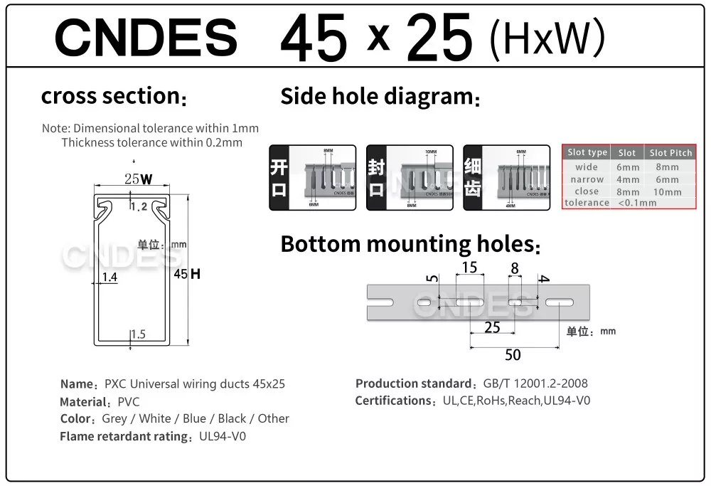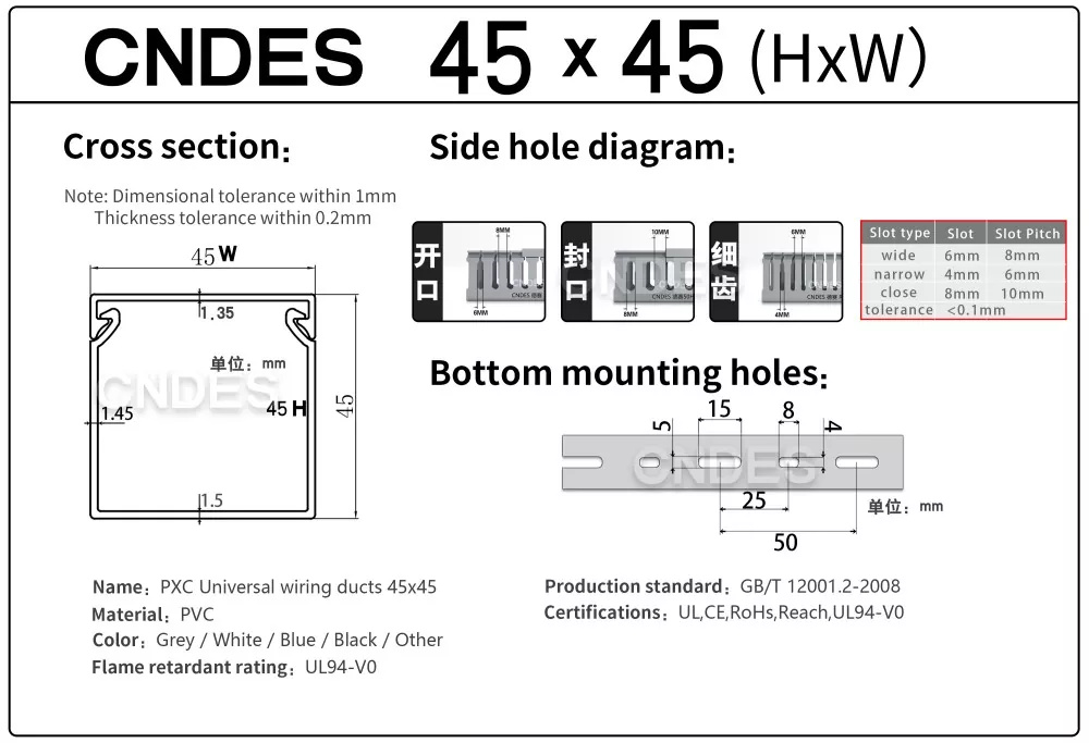 CNDES ұсынған 45 мм биіктіктегі саңылаулары бар ПВХ сымнан жасалған қақпақ арнасымен таныстыру, әртүрлі қолданбаларда кабельді тиімді басқаруға арналған негізгі шешім. Жаңа электр панелін жобалап жатсаңыз, машинаның сымдарын орнатуды жақсартсаңыз немесе үйіңіздің электр жүйесін жақсартсаңыз, біздің Биіктігі бар ПВХ сым қақпағы функционалдық пен эстетикалық тартымдылықтың тамаша теңгерімін қамтамасыз етеді.