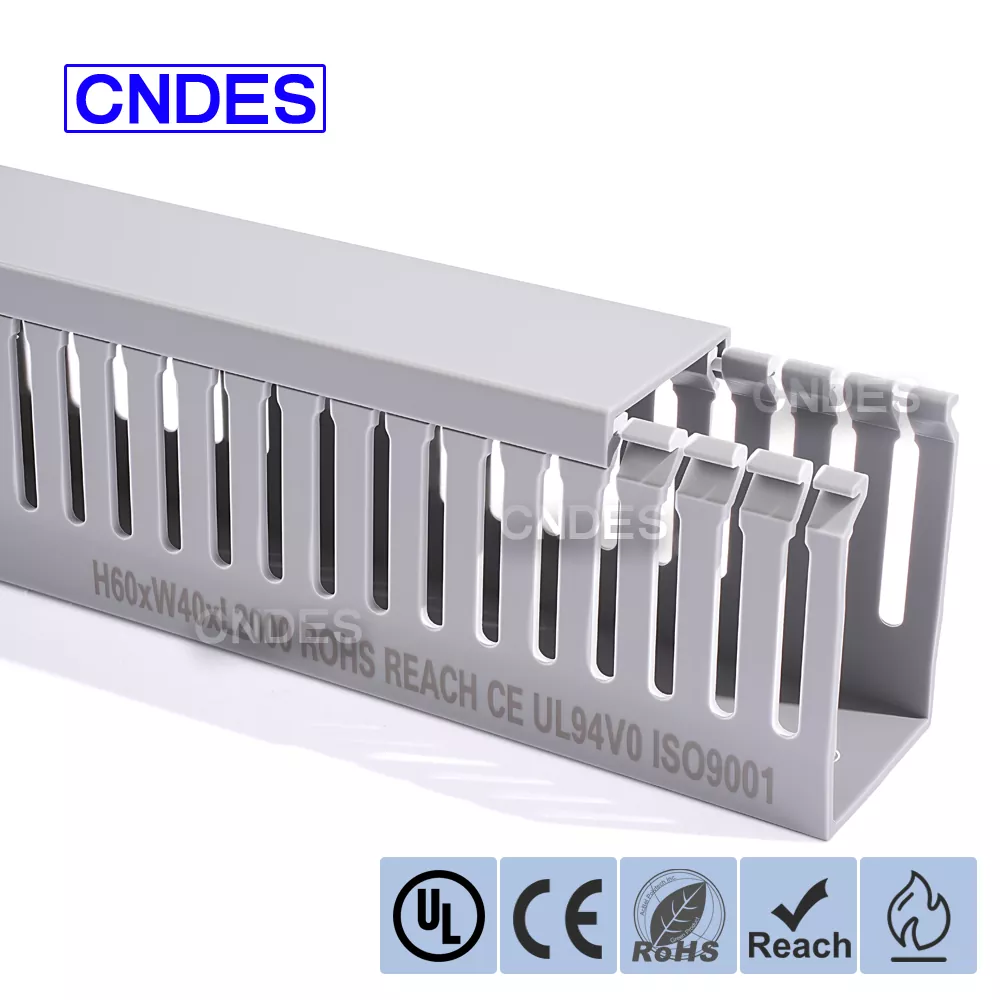 Сапалы 60×40 жалынға төзімді ПВХ сым арнасы қауіпсіздік пен ұйымдастыру маңызды болып табылатын электр панельдеріне, басқару шкафтарына және өнеркәсіптік автоматика жүйелеріне арналған сенімді кабельді басқару шешімі болып табылады. Қытайдағы сенімді ПВХ сым құбырларын өндіруші және жеткізуші CNDES компаниясы шығарған бұл модель ықшам өлшемдерді сертификатталған отқа төзімді өнімділікпен біріктіреді, бұл оны кәсіби электр қондырғылары үшін өте қолайлы етеді.