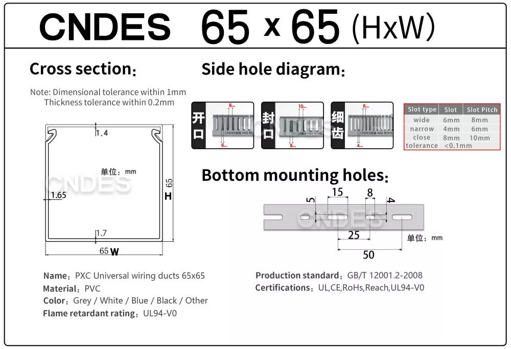 Кәсіби өндіруші ретінде біз сізге CNDES саңылаулары бар 65 × 65 PVC кабельдік жарыс жолын ұсынғымыз келеді.