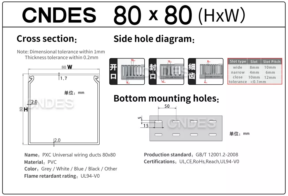 Егер сіздің жобаңыз көптеген кабельдерді, қалың сым диаметрлерін қамтыса және ұзақ мерзімді тұрақты жұмысты қажет етсе, өнімділігі жоғары 80 × 80 саңылаулы ПВХ коммутатор сым арнасы сіз үшін таңдау болады!