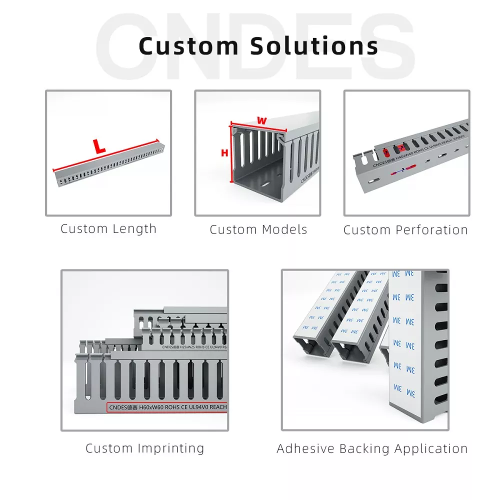 Стандартты кабельдік науалар күрделі сым сымдарын орналастыра алмаса, CNDES теңшелген 80×80 саңылаулы ПВХ коммутатор сым арнасы сіздің жақсы таңдауыңыз болады. 80мм*80мм үлкен ішкі кеңістігімен ол деректер орталығының магистральдық кабелі, өнеркәсіптік жабдықтың қуат кластерлері және үлкен басқару шкафтарындағы орталықтандырылған сымдар сияқты сұранысы жоғары сценарийлер үшін арнайы жасалған. Ол көптеген кабельдерді оңай орналастырады және ұйымдастырады, бұл ретсіздік пен кептеліспен біржола қоштасады.