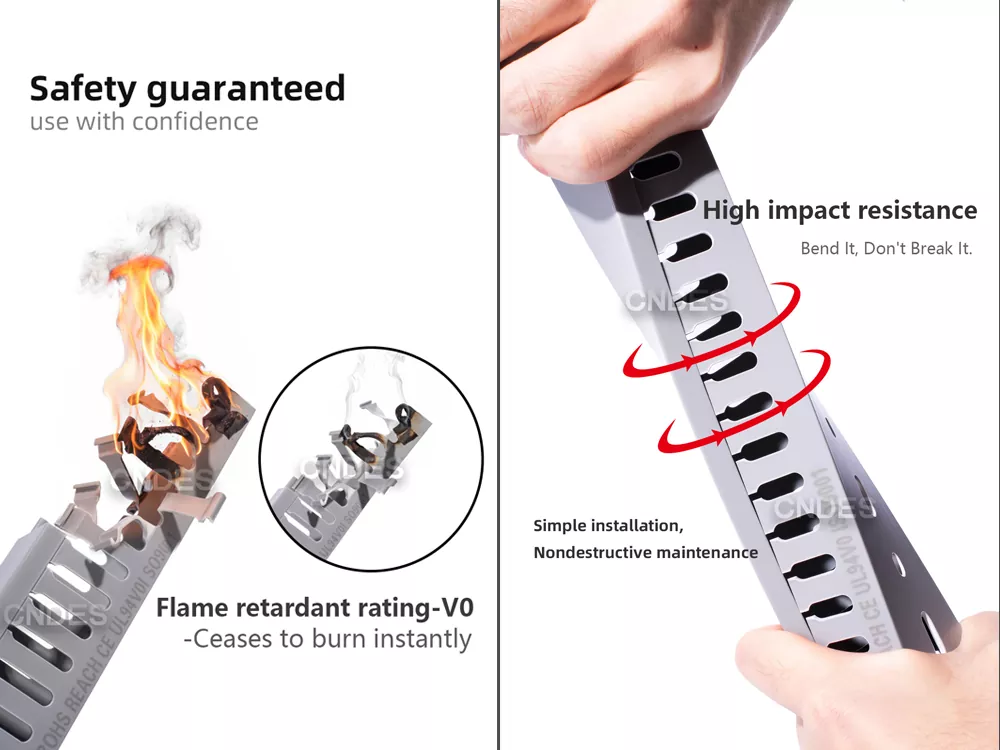 2. Өнеркәсіптік дәрежедегі беріктік, қауіпсіз және сенімді: Сапалы 80×80 саңылаулы ПВХ коммутаторының сым арнасы қалыңдатылған жалынға төзімді ПВХ материалынан (UL94-V0) жасалған, бұл оны берік, берік, соққыға төзімді және тамаша жүк көтеру қабілетіне ие етеді. Ол тіпті діріл орталарында кабельдерді ұзақ уақыт қорғауды қамтамасыз етеді.