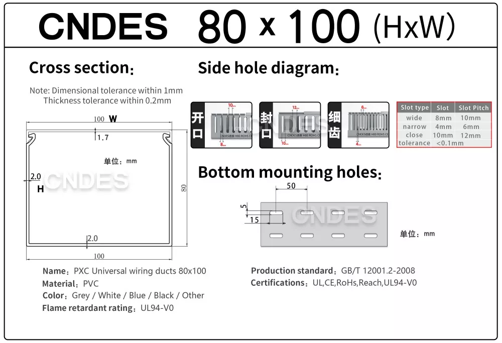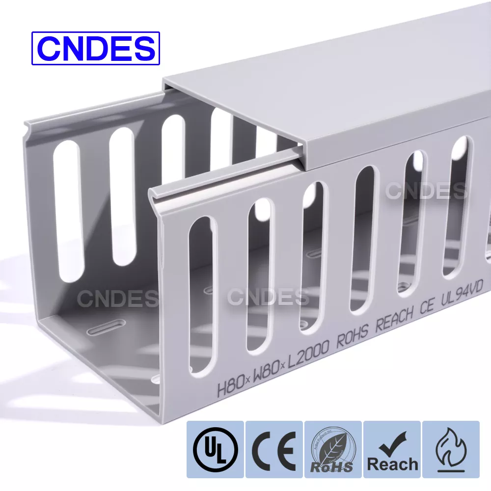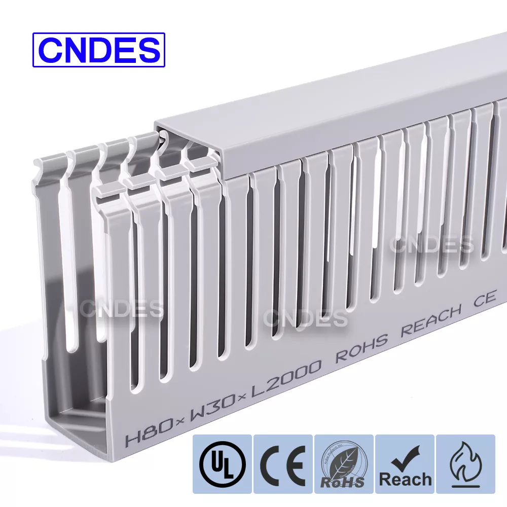 CNDES ұсынған 80 биіктігі саңылаулы ПВХ автоматтандыру кабельдік арнасы өнеркәсіптік автоматтандыру жүйелерінде кабельді тиімді басқаруға арналған. Биіктігі 80 мм және саңылаулары бар бұл арна күрделі басқару жүйелерінде, PLC құрылғыларында және машина сымдарының қосымшаларында кабельдерді ұйымдастырылған және қорғалған күйде сақтай отырып, жоғары тығыздықтағы сымдар үшін кең орын береді.
